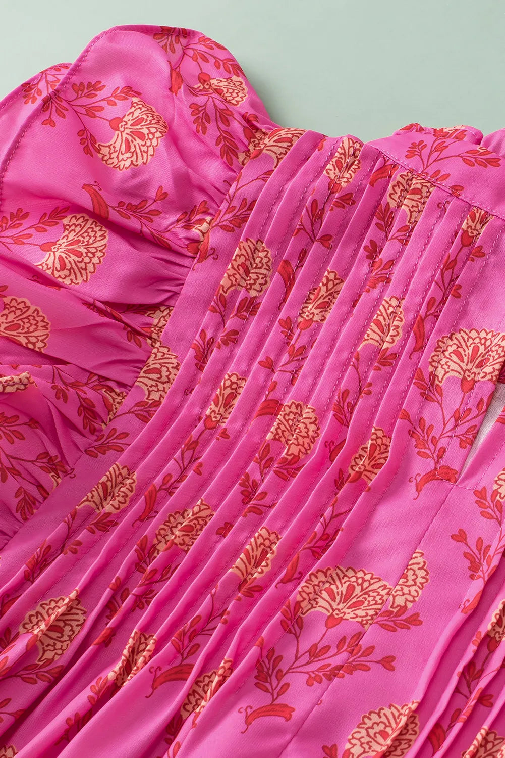 Ruffled Printed Mock Neck Cap Sleeve Blouse