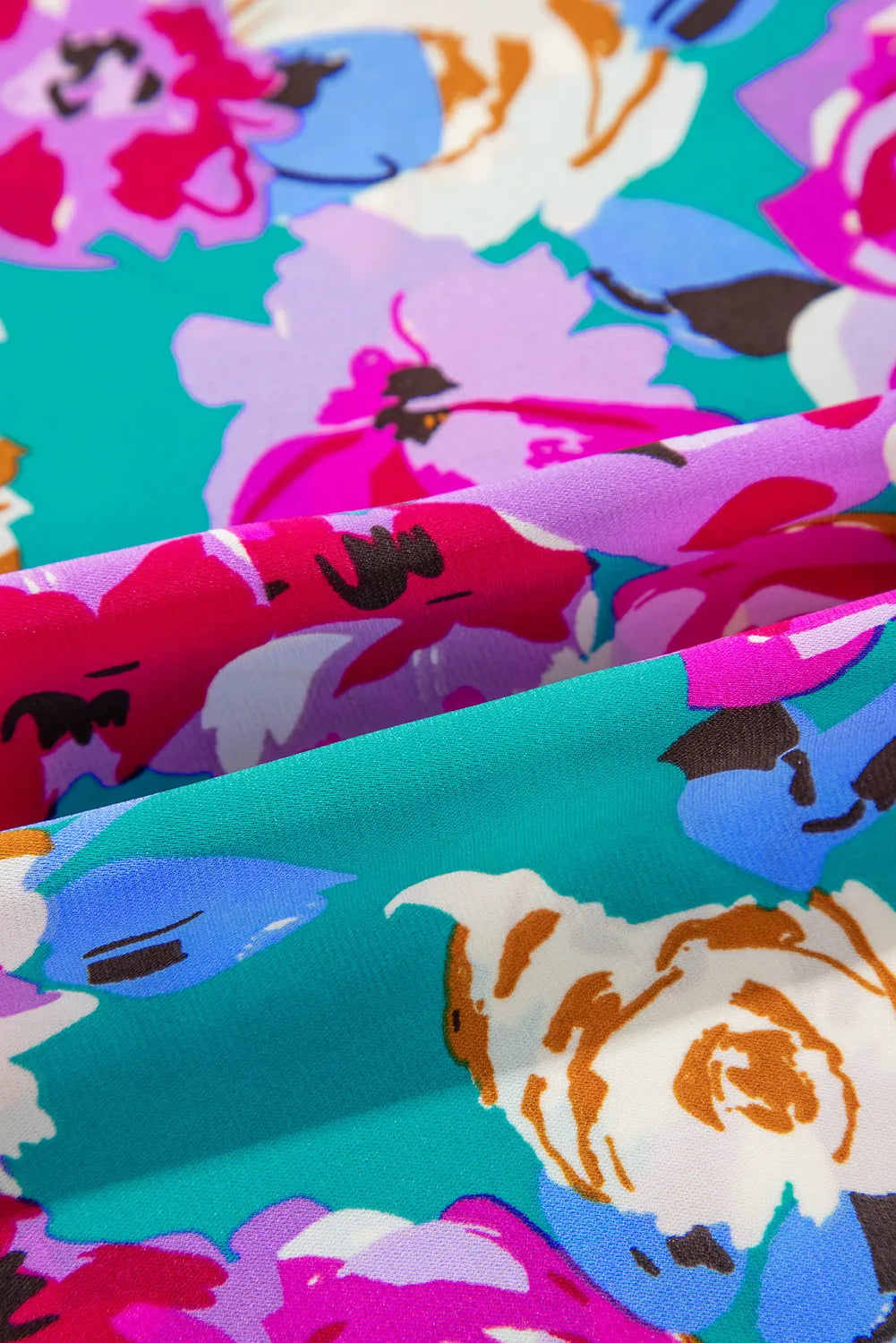 Ruffled Printed Notched Short Sleeve Mini Dress
