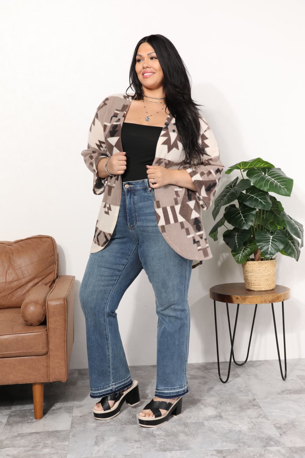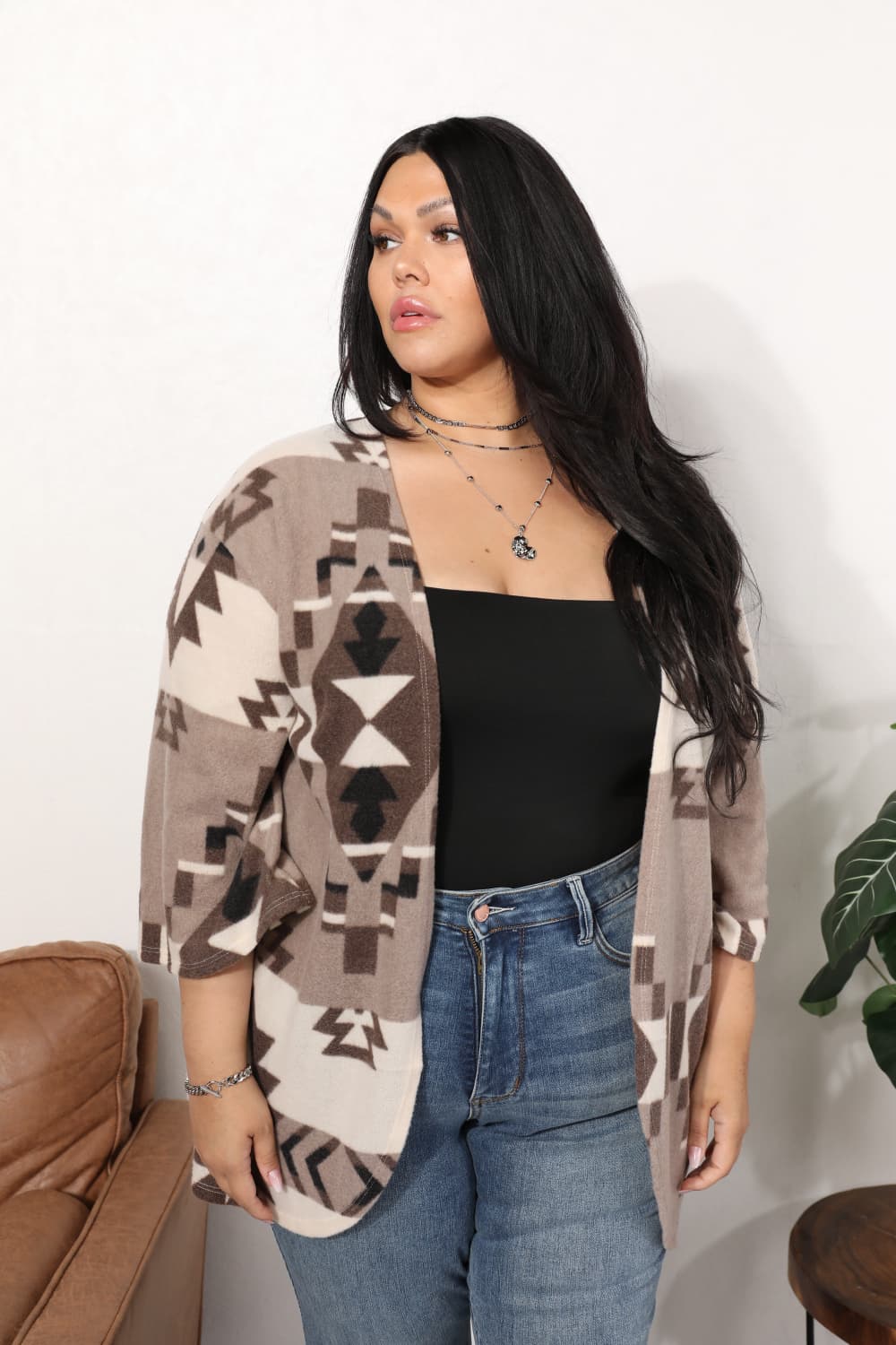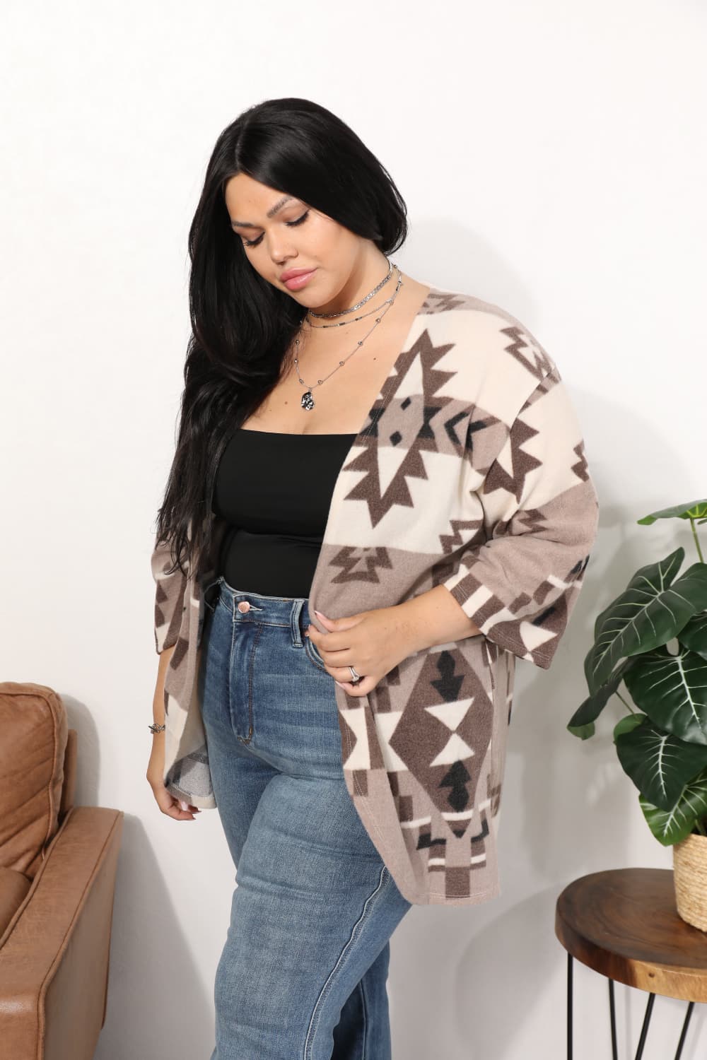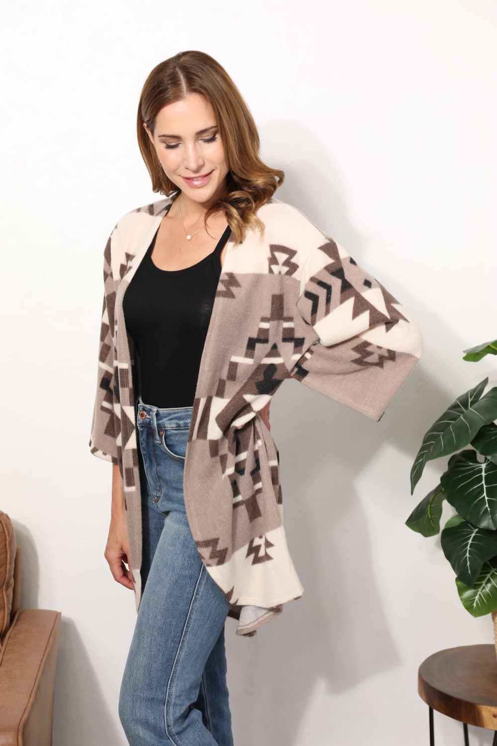 Sew In Love Full Size Cardigan with Aztec Pattern