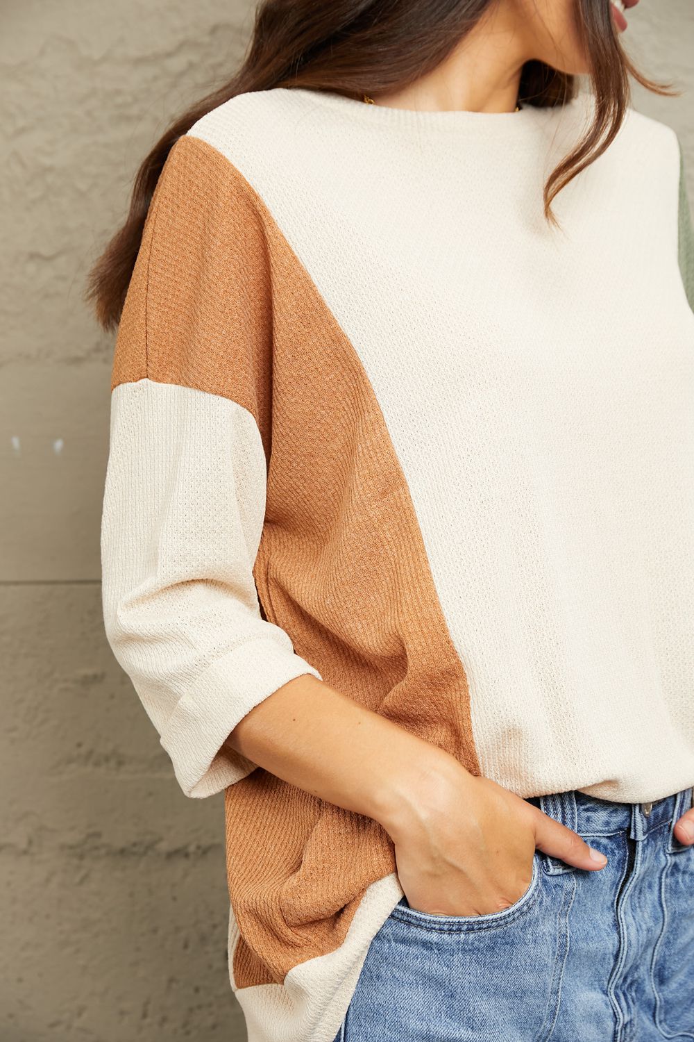 Sew In Love Full Size Tri-Color Pattern Blouse