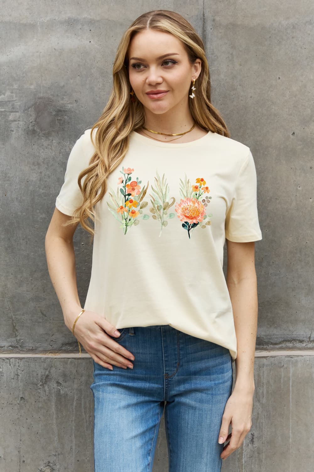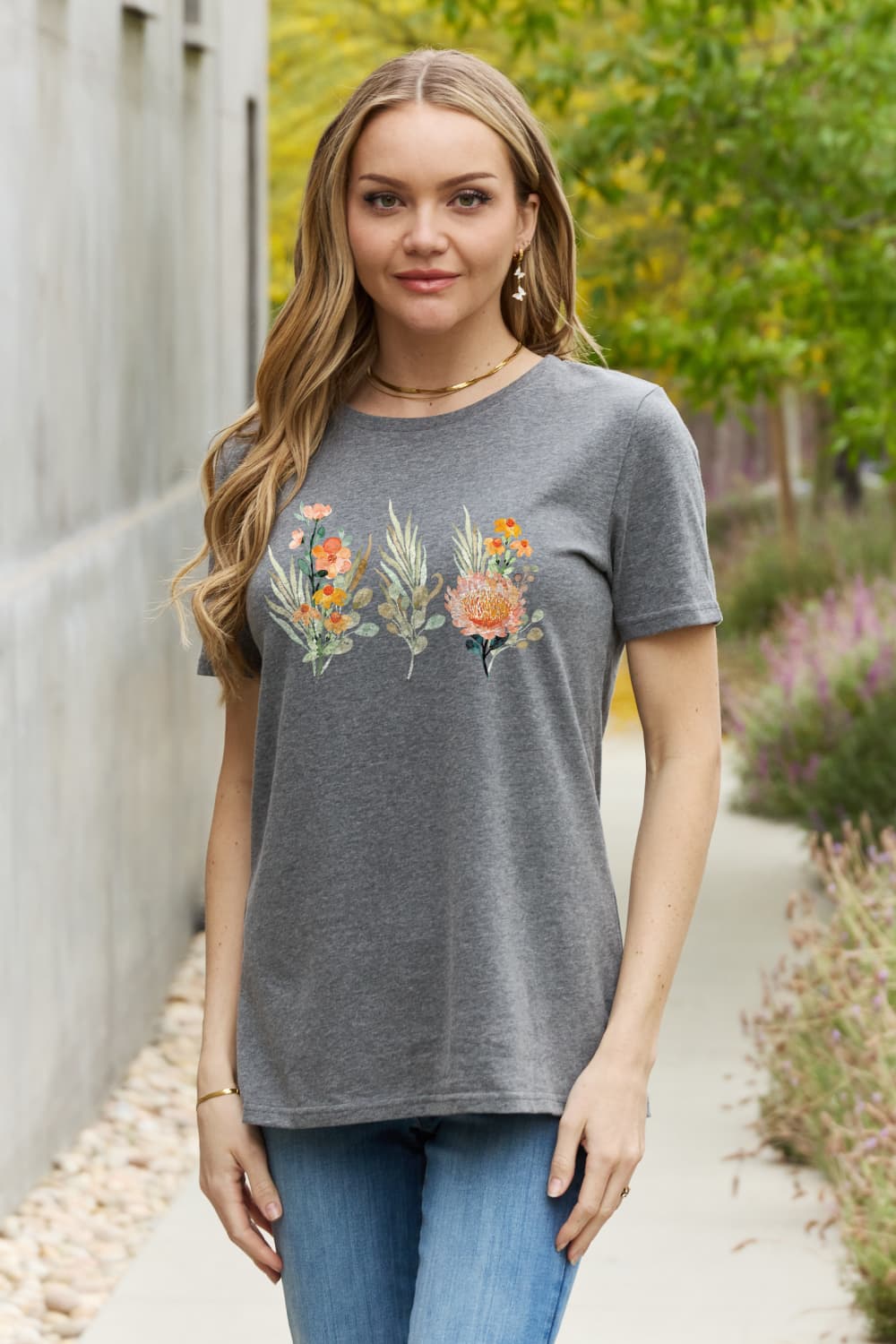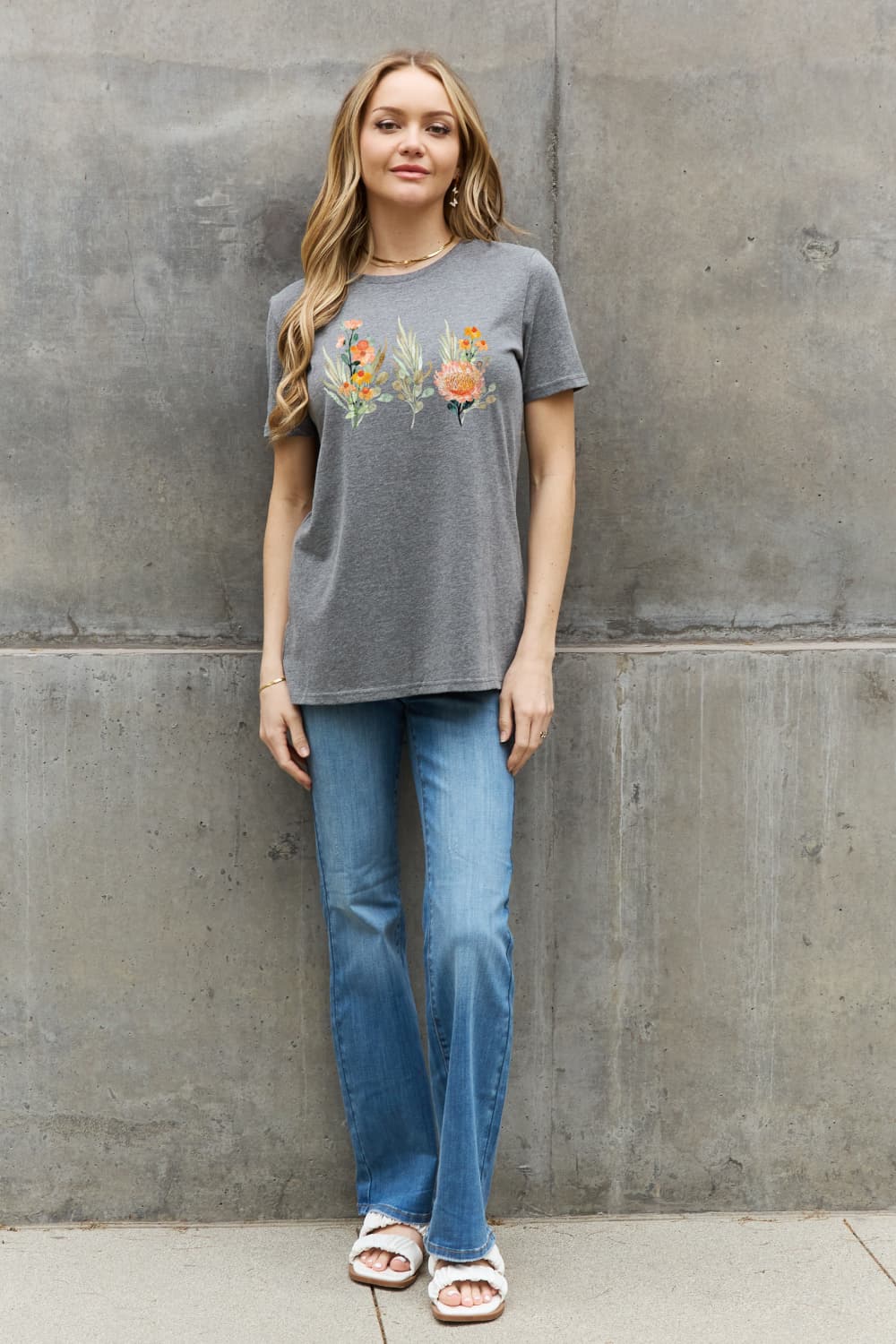 Simply Love Flower Graphic Round Neck Cotton Tee