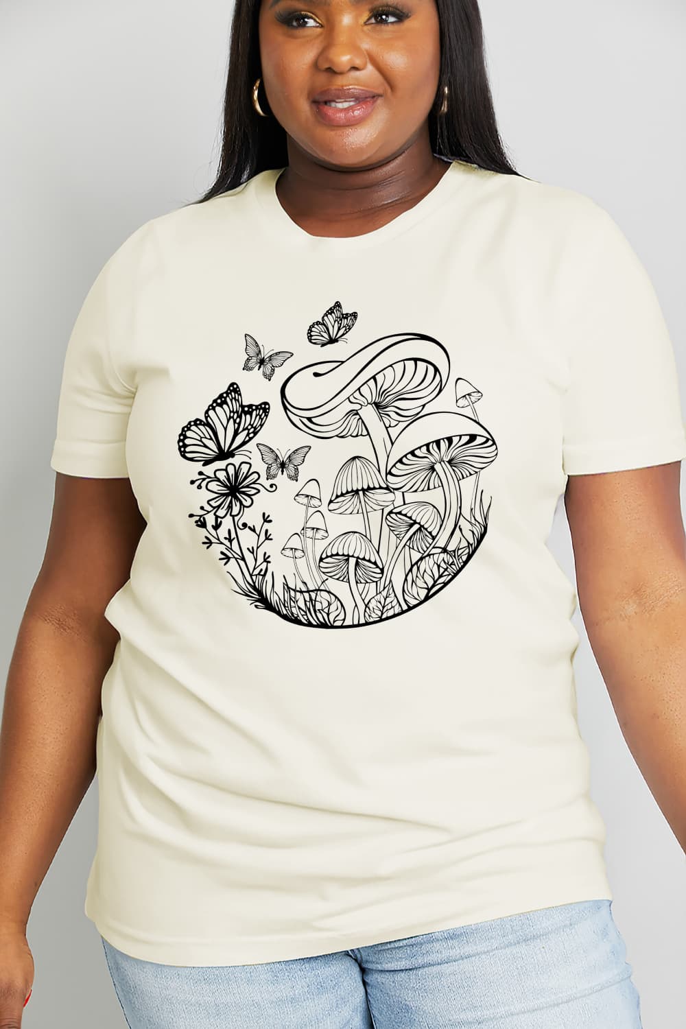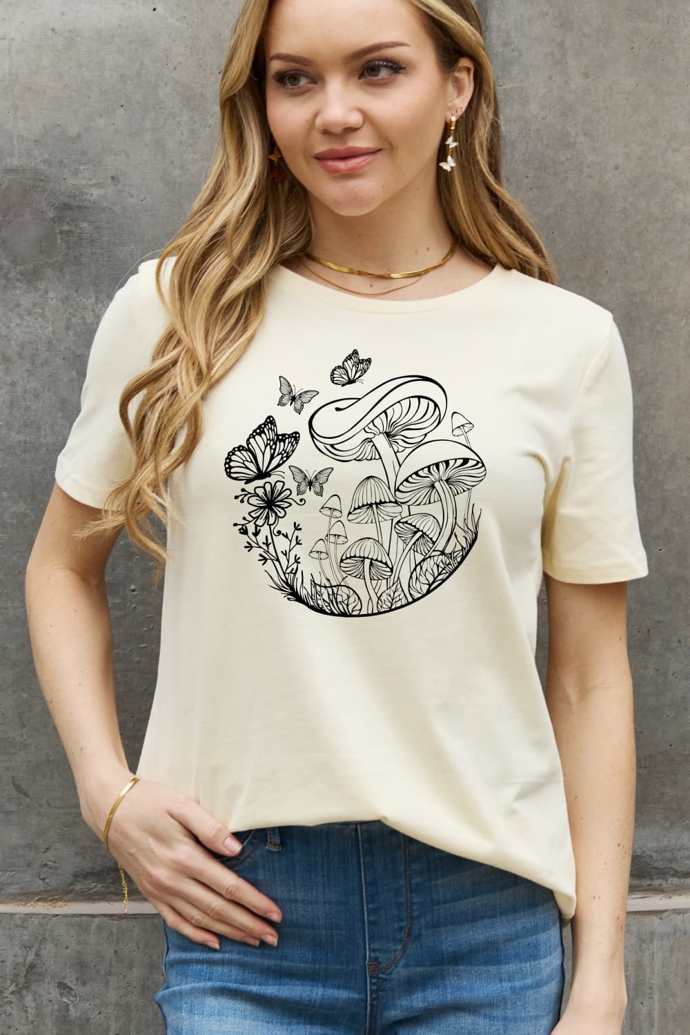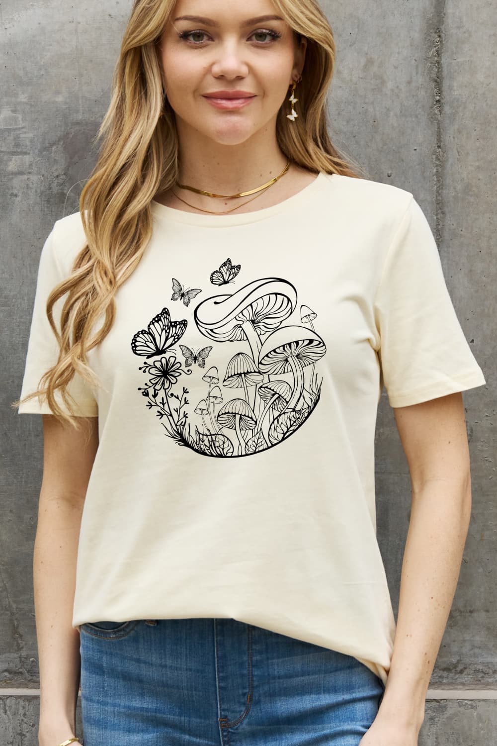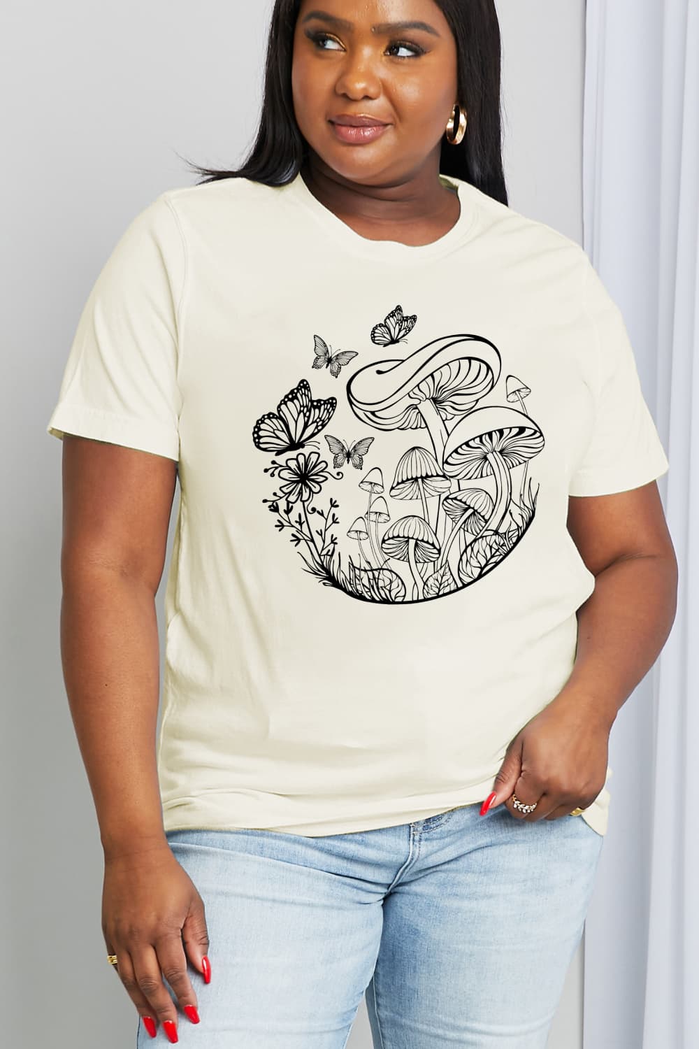 Simply Love Full Size Butterfly & Mushroom Graphic Cotton Tee