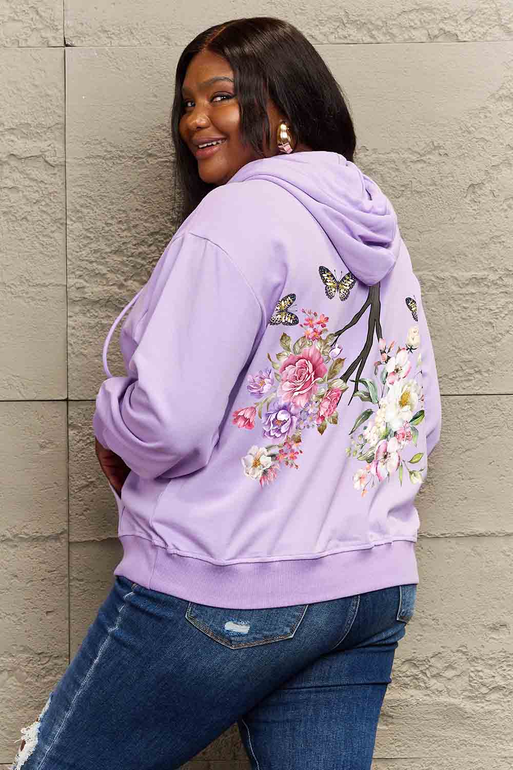 Simply Love Full Size Flower & Butterfly Graphic Hoodie