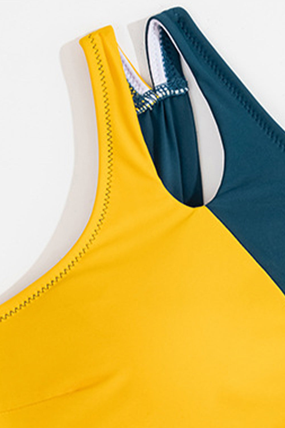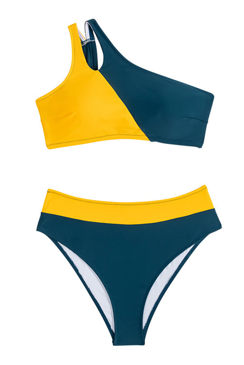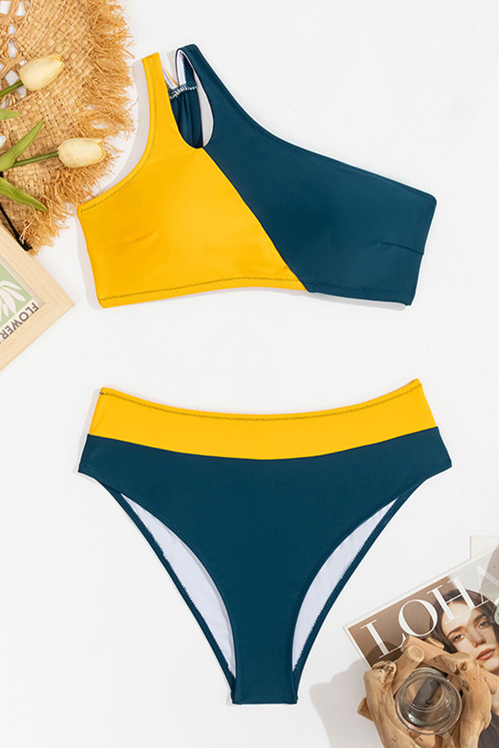 Skobeloff Color Block One Shoulder High Waist Bikini Swimsuit