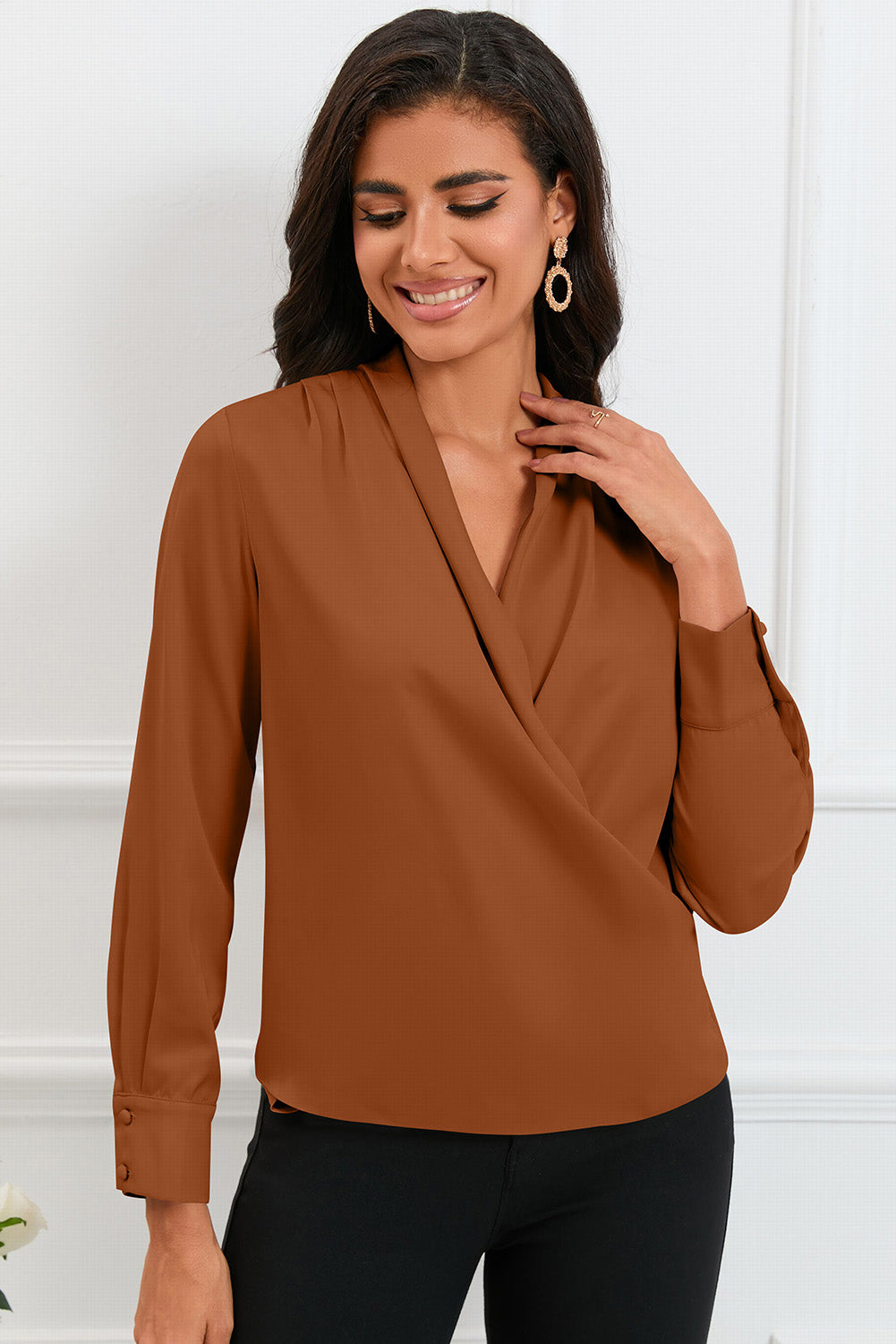 V-Neck Buttoned Long Sleeve Blouse