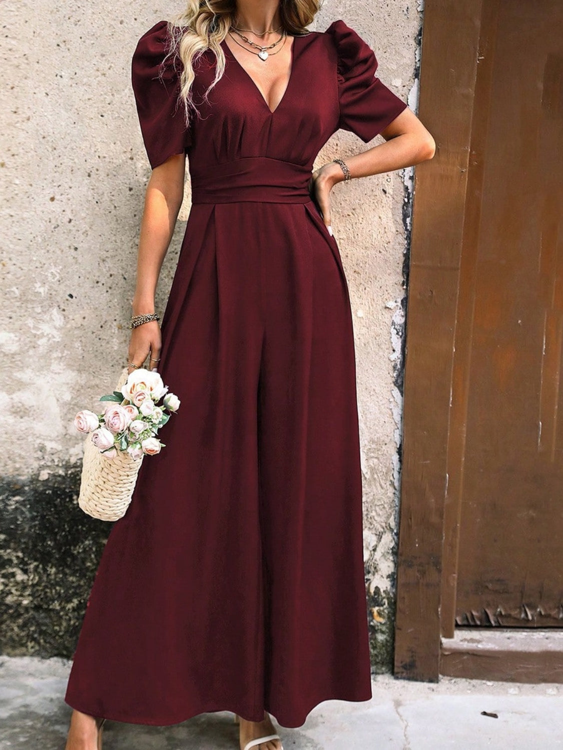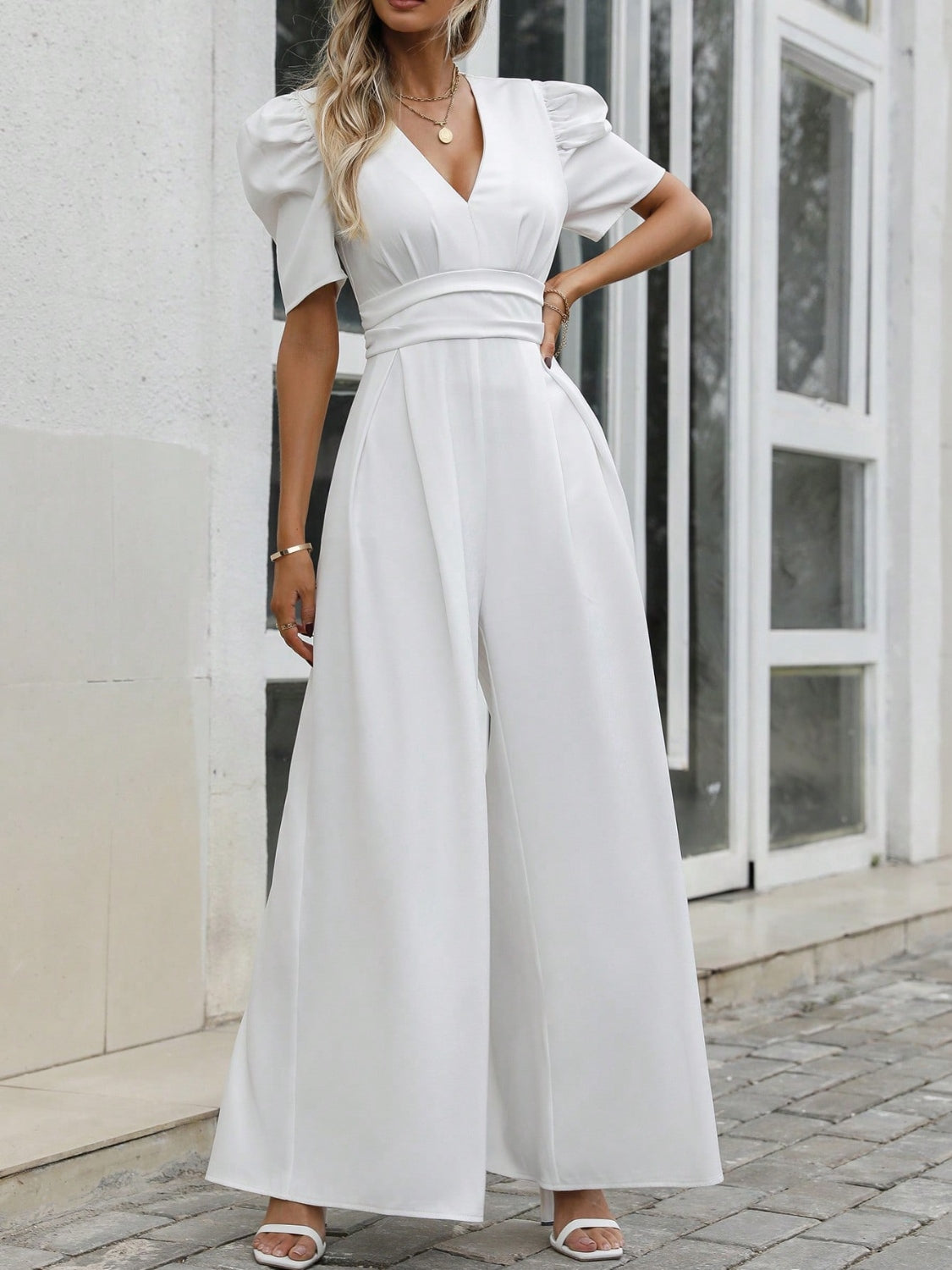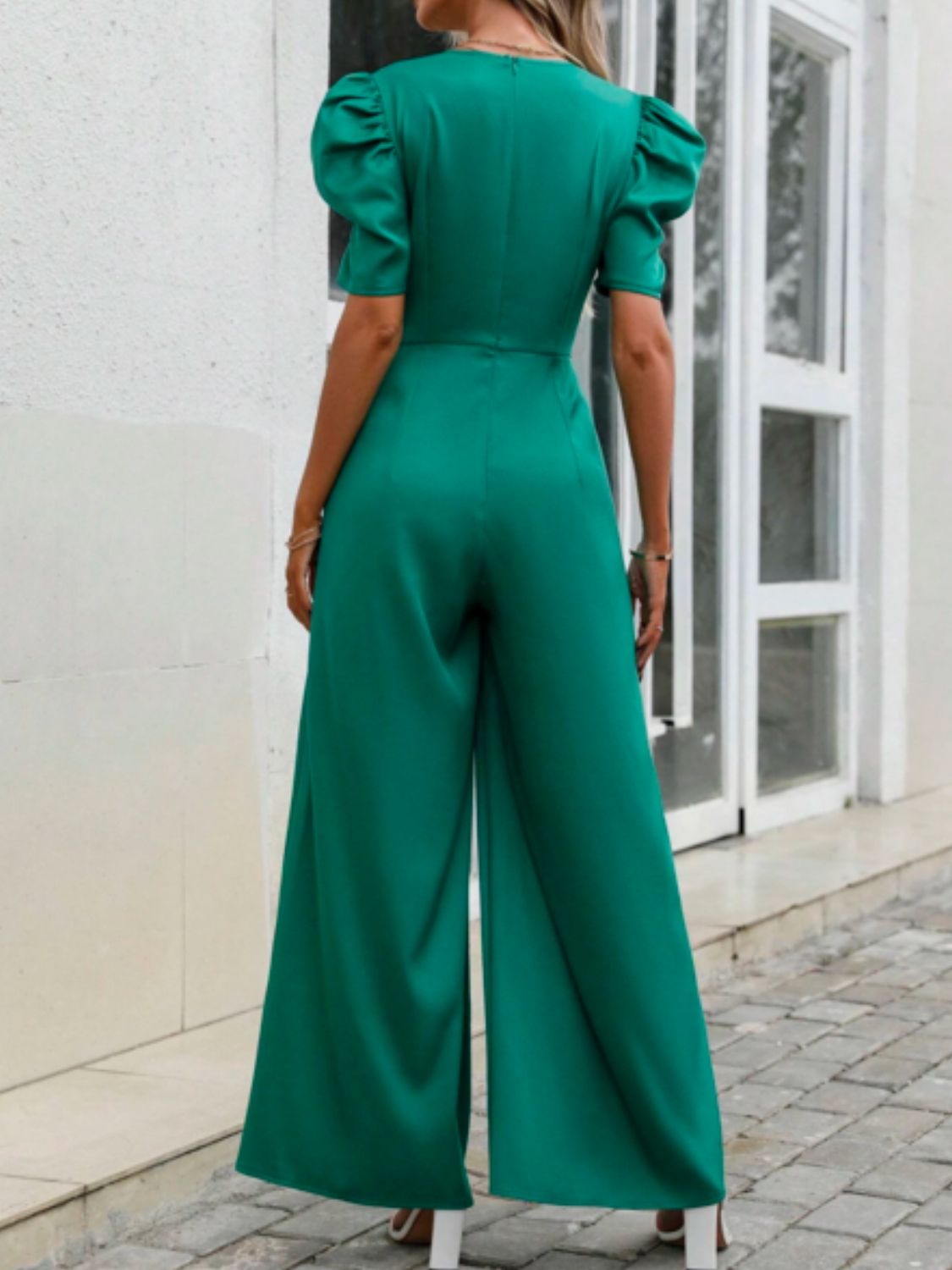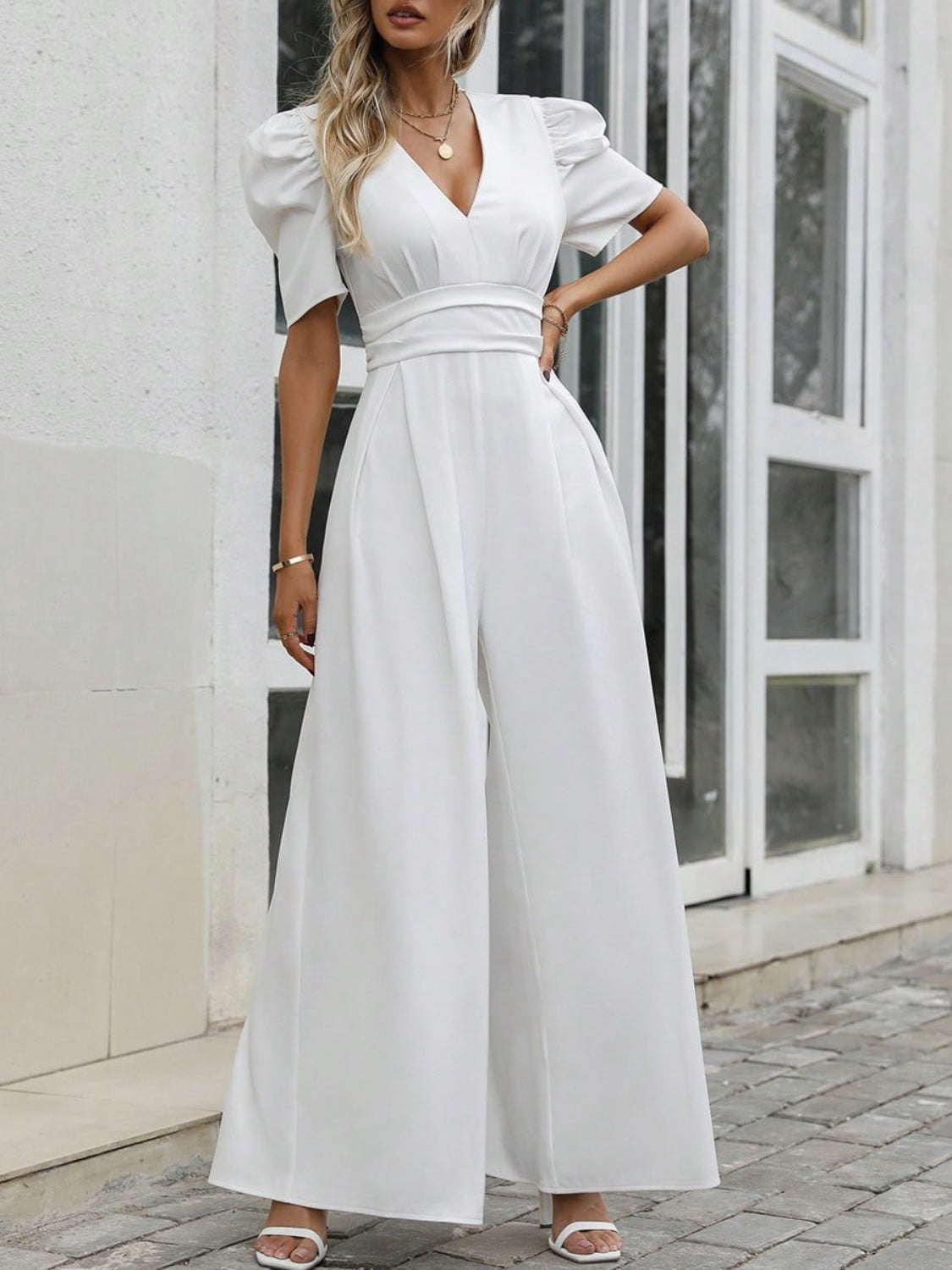 V-Neck Short Sleeve Wide Leg Jumpsuit