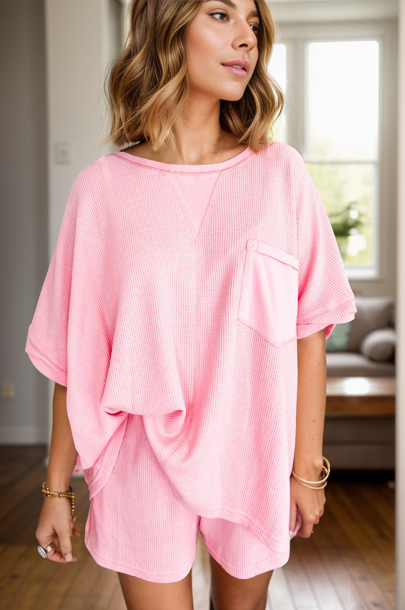 Waffle-Knit Half Sleeve Top and Shorts Set