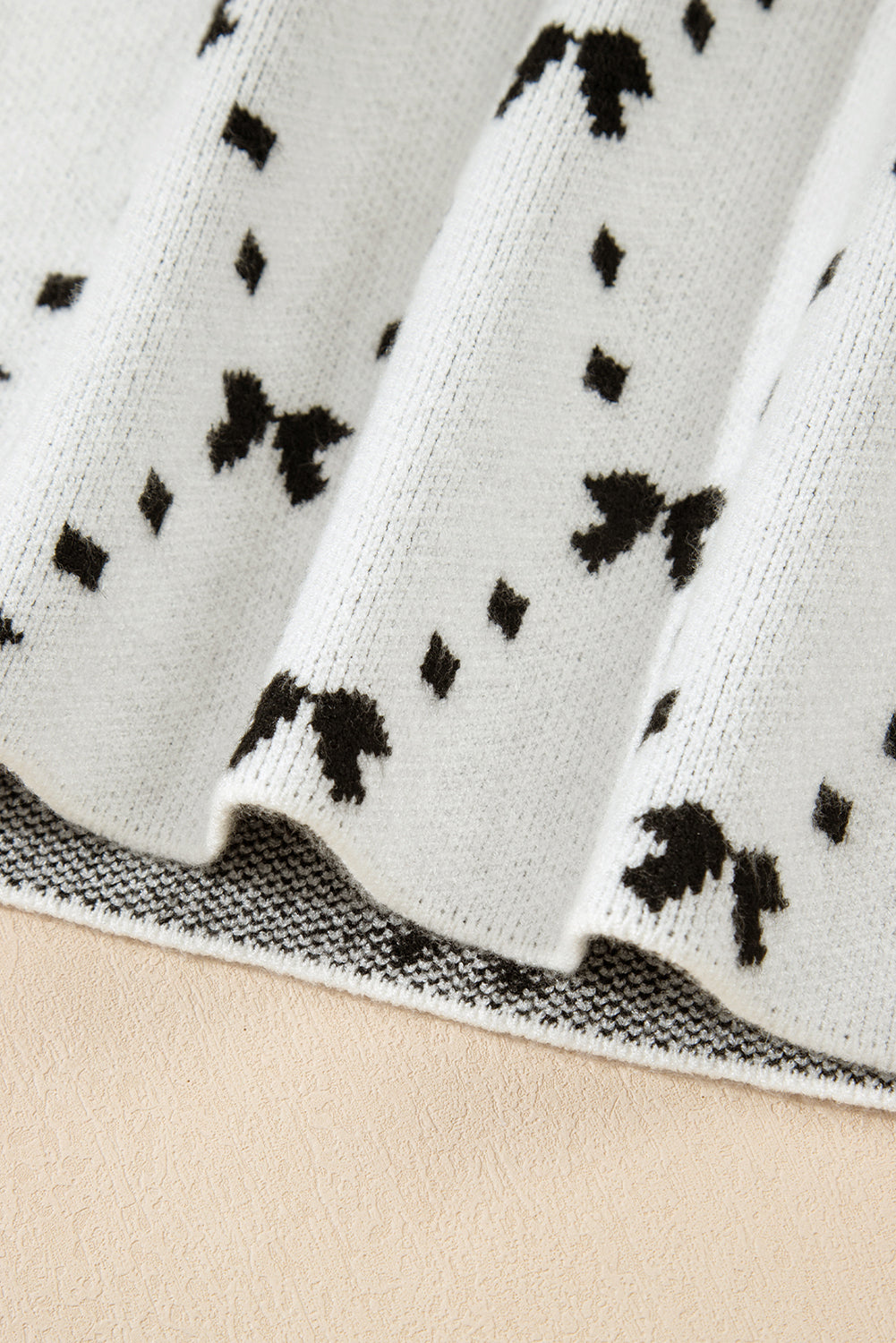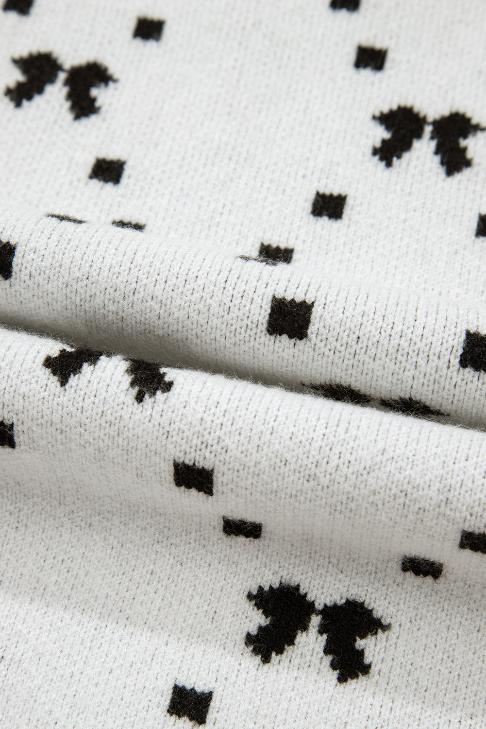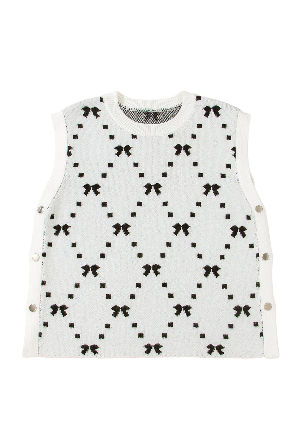 White Bow Pattern Buttoned Side Knit Top