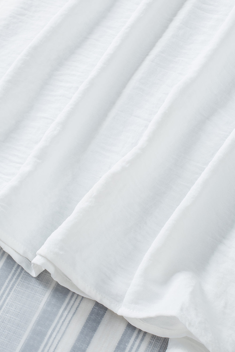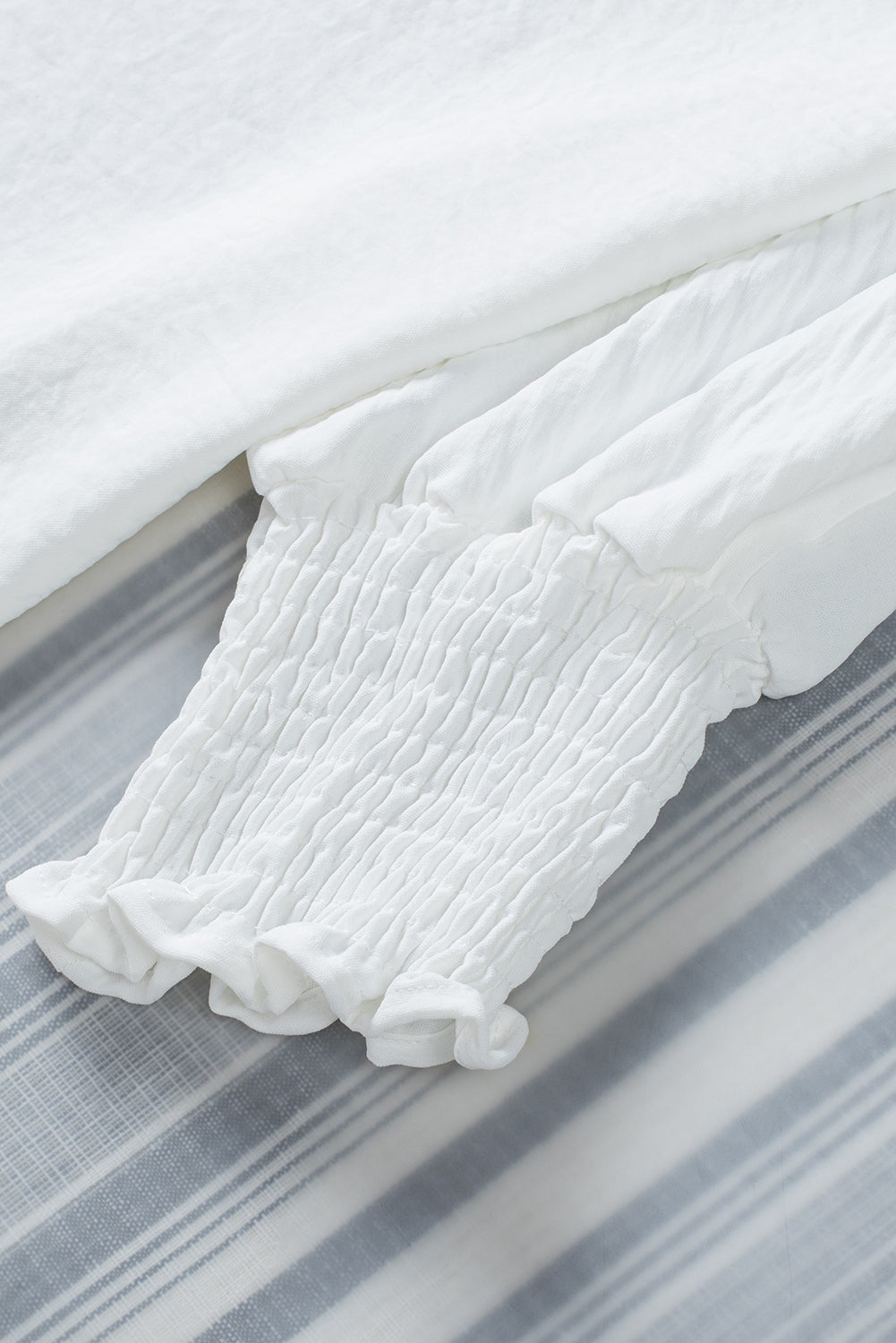 White Plain & Casual Shirred Cuffs Half Sleeve Top
