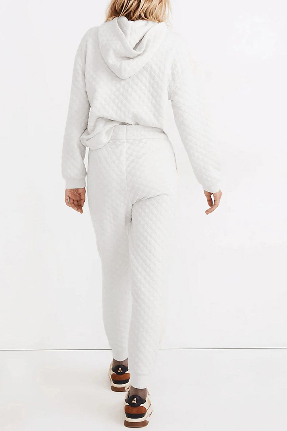 White Quilted Hoodie and Drawstring Jogger Pants Set