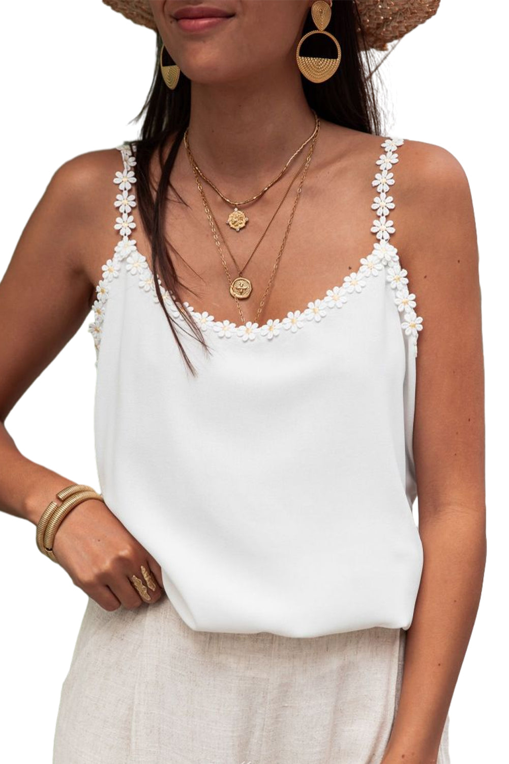 White Solid Daisy Flower Straps Cami Top