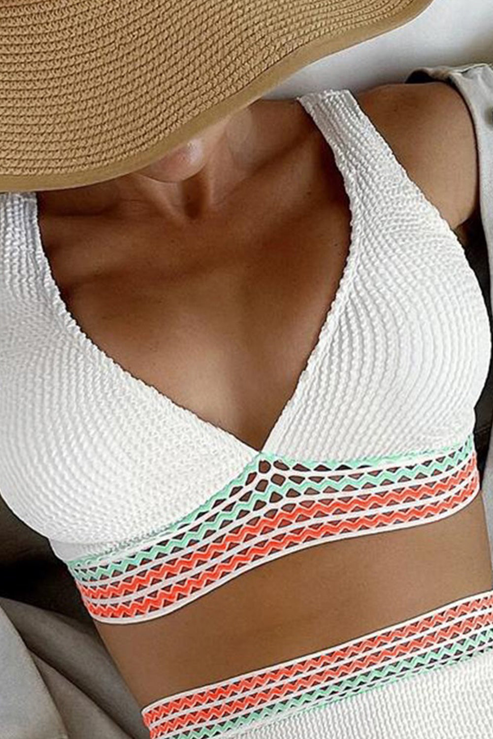 - The timeless white stripes exude a sense of classic style, and the high-waisted bottoms offer a versatile option for mixing and matching with other swimwear pieces.