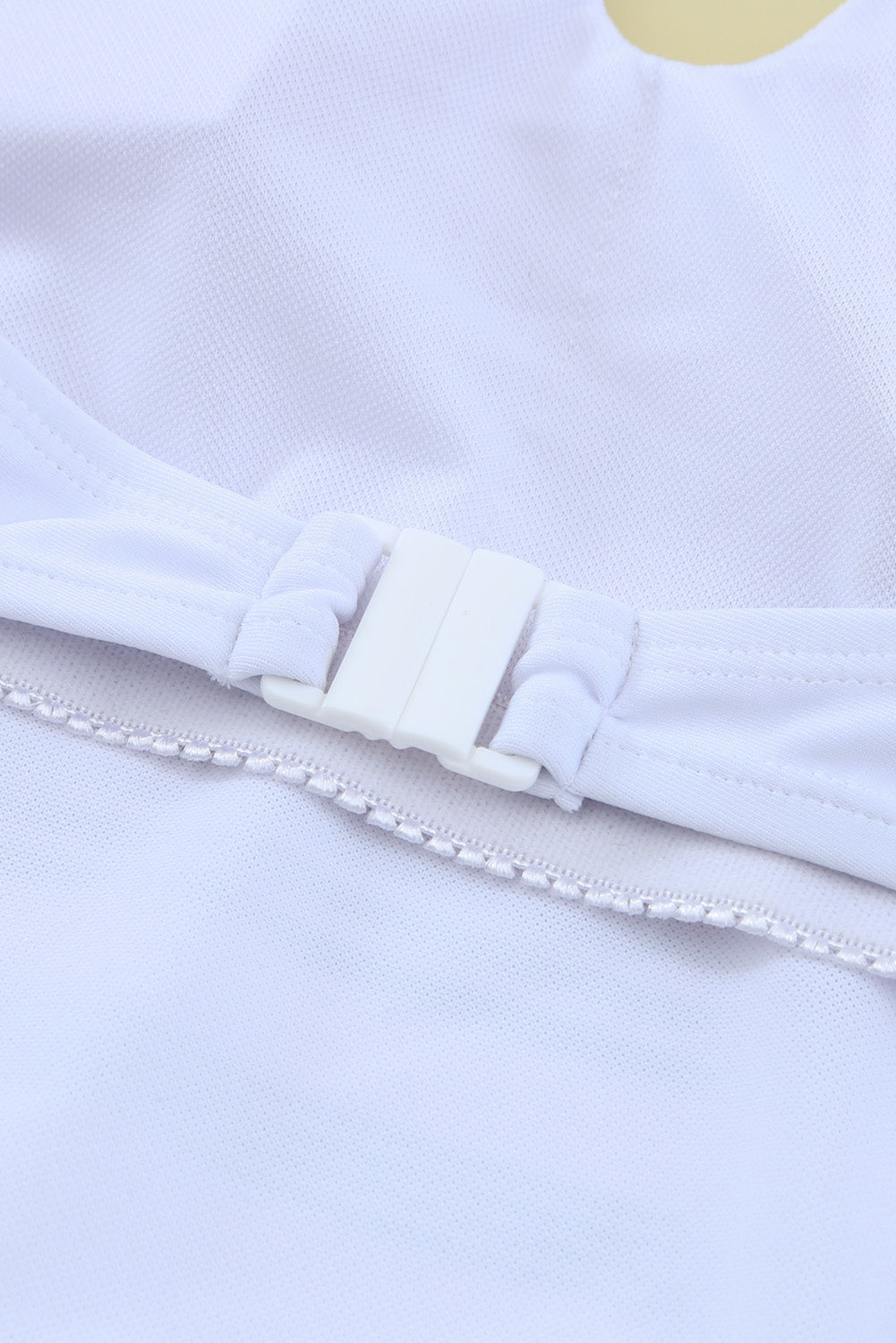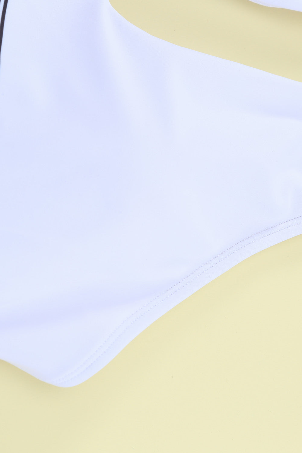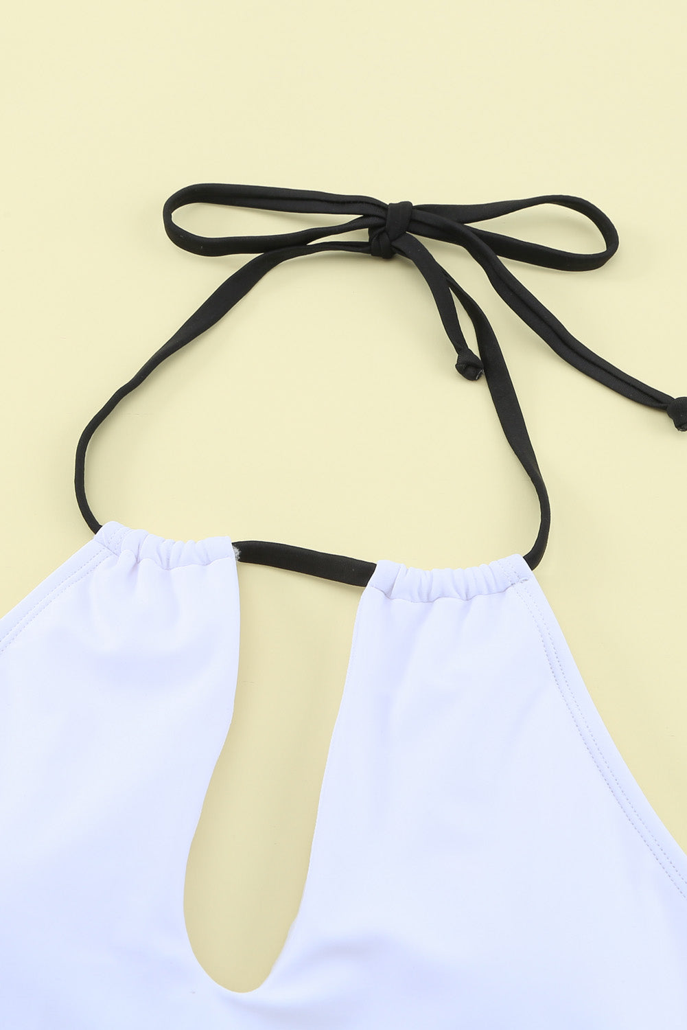 White Striped Backless Cut Out Halter One Piece Swimsuit